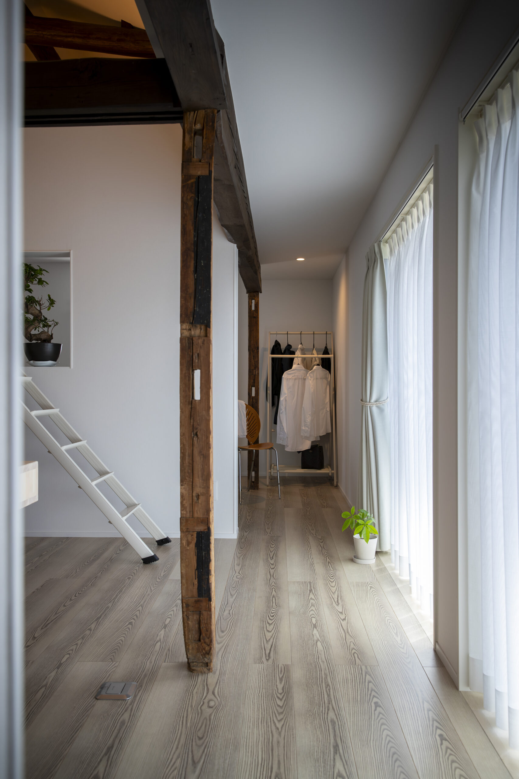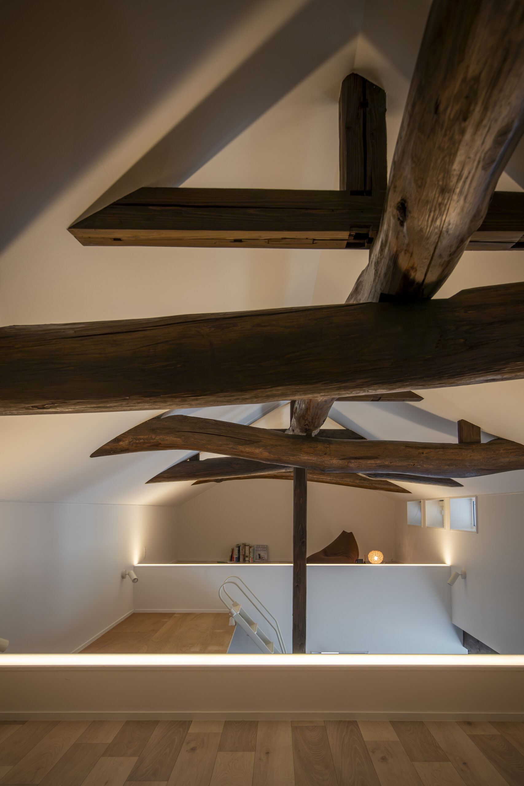 地域の役場として使われていた築100年の建物を曳家し、離れとして使った後、若夫婦の住まいとしてリノベーション。その先の100年も見据えて耐震補強、断熱改修しました。古民家ならではの良さを活かしつつ、若夫婦の住まいとしてのモダンさも忘れずにデザインしました。
